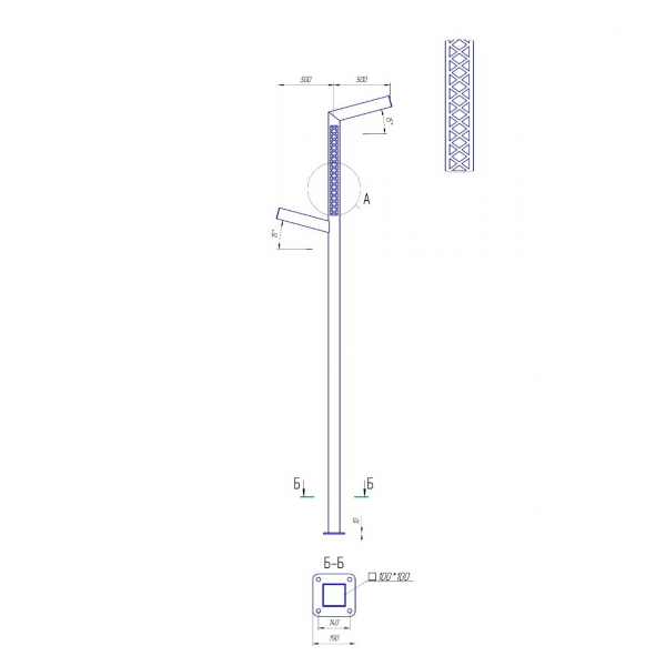 Возможно изготовление как прямостоечной, так и фланцевой опоры освещения.
