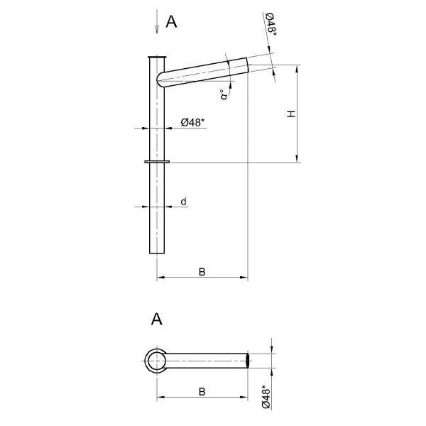 Однорожковые кронштейны К20-0,2-0,2-1-1 предназначен для крепления светильника на трубчатой опоре освещения. Завод опор освещения «Альдекс» изготавливает однорожковые консольные кронштейны из стального проката. Собственное производство позволяет выполнять изделия надлежащего качества и в кратчайшие сроки. Конструкция однорожковых кронштейнов К20-0,2-0,2-1-1. Конструкция консольных однорожковых кронштейнов К20-0,2-0,2-1-1 представляет собой гнутую металлическую трубу заданных размеров.